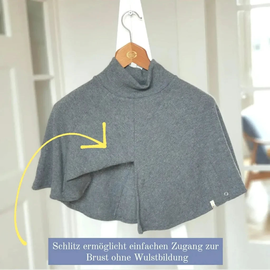 Gerade beim nächtlichen Stillen oder Co-Sleeping mit deinem Baby kühlt der Oberkörper schnell aus, wenn du die Bettdecke nicht mehr bis unter die Nasenspitze ziehen kannst. Das Stillcape bietet eine kuschelige Lösung dafür. Es wärmt deinen Oberkörper und bietet gleichzeitig schnellen und komfortablen Zugang zur Brust für dein Stillkind.